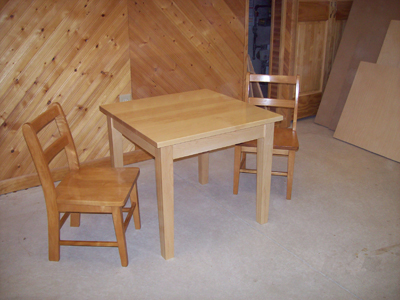This is a solid maple table I built for my granddaughters for Christmas. The chairs came from my son-in-law’s grandmothers estate.