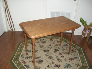 I saw this in your October 2013 issue and had to build it. The table is red oak with a Watco medium walnut, oil finish protected by a paste furniture wax.