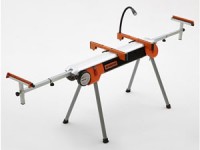 The Portamate PM-7500 Deluxe Miter Saw Stand has 20″ quick-release universal machinery mounts that snap securely to the aluminum top.