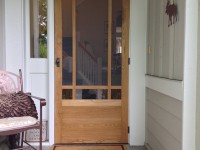 I finally have the glass installed and the door hung. After asking lots of folks, the unanimous opinion was to put the hinges on the same side as my inside door.