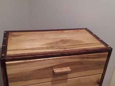 I made this cabinet for my foyer for keys, hats, gloves, etc. It is curly maple with Chechen breadboarding and a natural finish.