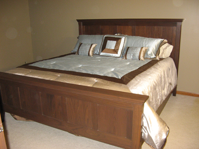 These are pictures of walnut bedroom furniture I made for my daughter and son-in-law. It includes a frame and panel king-sized bed, armoire, and two bedside tables, all custom designed.