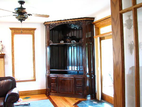 Here is an Corner Entertainment Center I made out of solid walnut to custom fit this space. Even the deck, shelves and top are frame and panel assemblies.