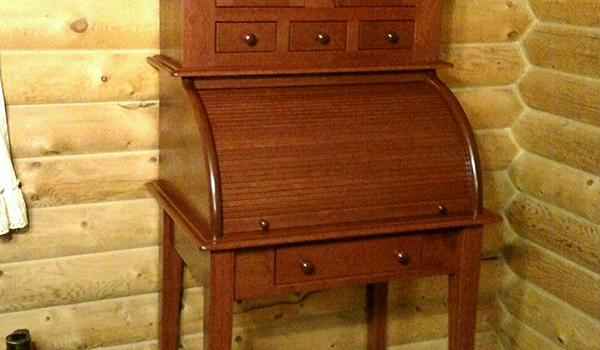 This reader turned reclaimed Apitong wood into a stylish and functional rolltop desk along with all the accents.