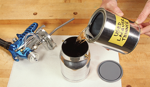 When cleaning my spray gun, I go through three rinses. It troubled me how much lacquer thinner I was wasting in the process. Well, here’s how I now waste less.