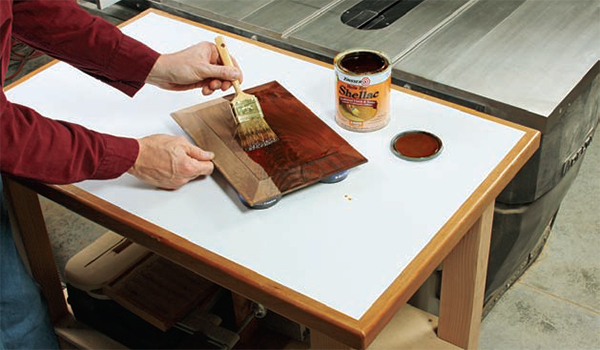 I covered the outfeed table of my table saw with plastic laminate. It not only helps workpieces slide over it more easily during sawing, but it also makes an ideal surface for finishing small projects.