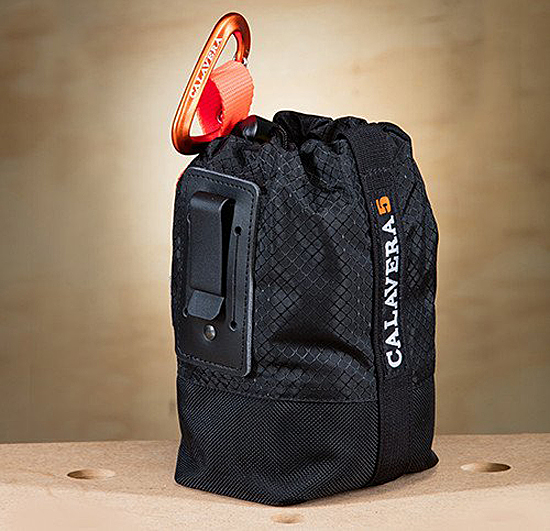 Cinch-able, rugged bags can clip to a belt or hang from an included carabiner for totable workshop or jobsite storage needs.