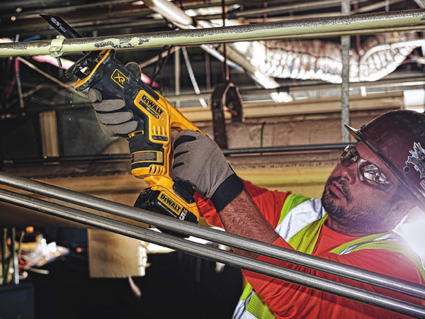 Short enough to fit between 16 O.C. framing members, this cordless recip saw also sports an efficient brushless motor.