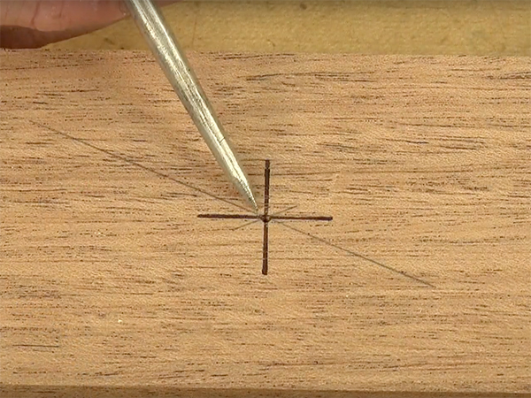 It’s easier to center your drill bits on a hole location when the center has been marked with a scratch awl.