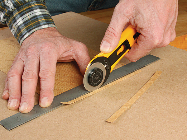 This reader didn’t want to buy a specialized tool just to cut thin veneer, so he turned to a tool from another hobby to do the job just as well.