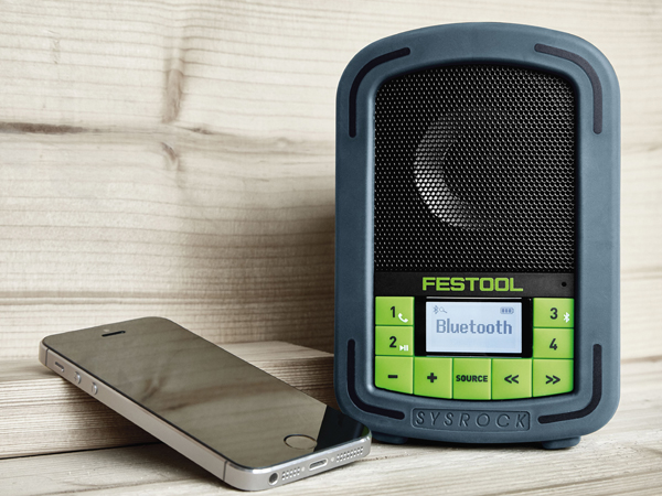 Fill the shop or jobsite with big sound from a tiny 6-in. jobsite radio that weighs less than 2 lbs., with Festool’s new SYSROCK Jobsite Radio.