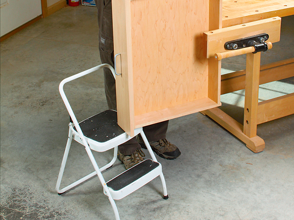 Do you have an old step stool around the house that you don’t use anymore? This reader turned his children’s old stool into a new shop helper.