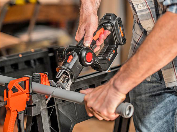 The new WORX 20V Axis combines the benefits of a reciprocating saw and jigsaw into one combination cordless tool for DIY, remodeling or woodworking.