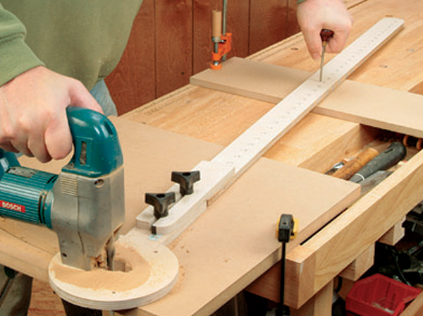 This jig allows you to cut out or shape accurate circles, semicircles and arcs using a standard jigsaw or router.