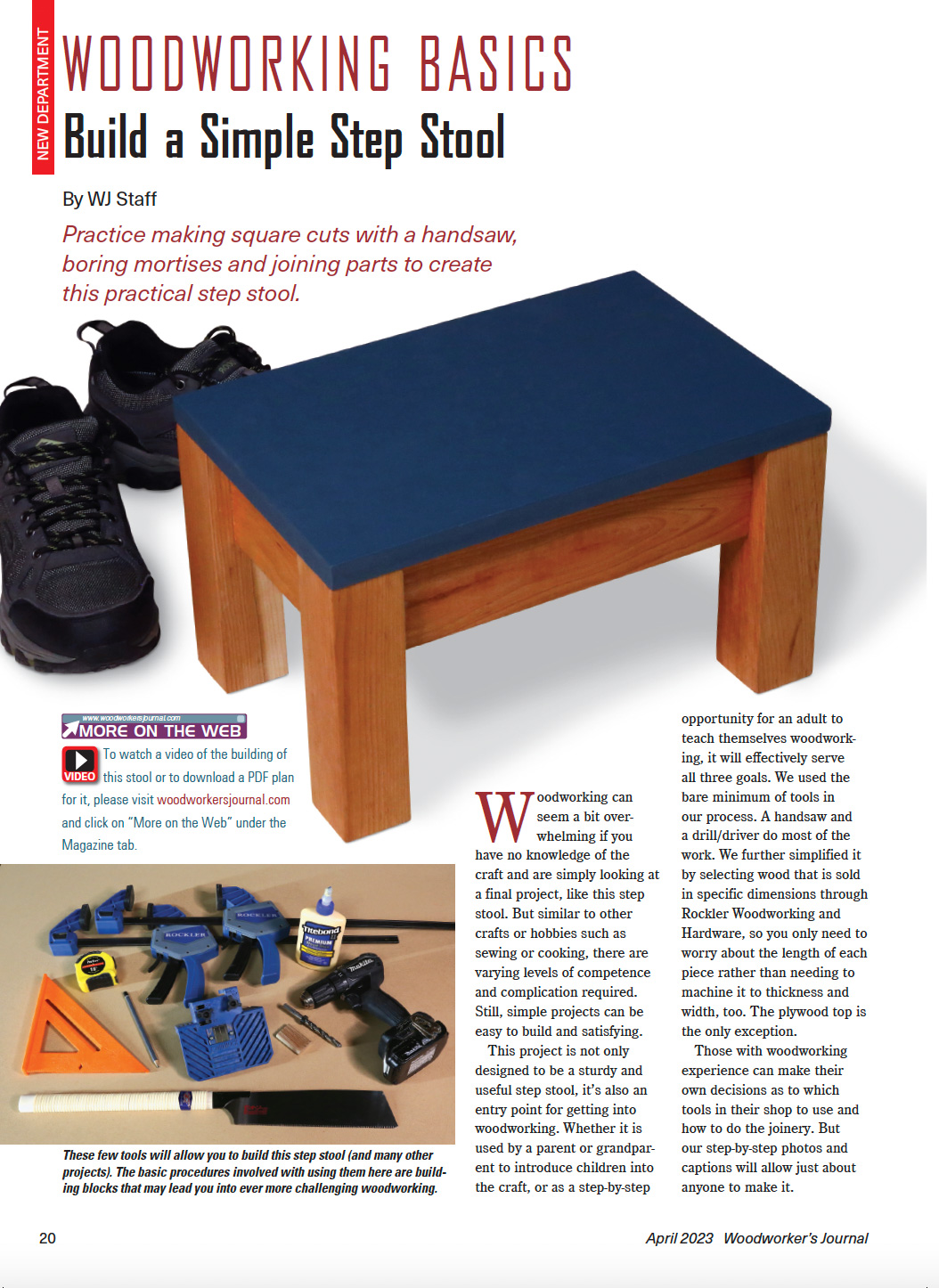 Knowledge is not much use if it does not spur a response, so I’d like to tell you about a new effort in our print magazine. We are calling it Building Basics. Making use of four practical projects, we are going to teach the basics of woodworking in a way that anyone can do (see photo below for our first effort). I am excited about the series and can’t wait to hear reader reactions.