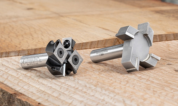The Slab Flattening Mill works best with 2hp or larger routers, and the router plate is pre-drilled to accept 16 popular router models. For better efficiency and smoother results, Woodpeckers also recommends using larger-diameter “spoilbit” style router bits with this system. The company offers two different bit styles — a 1-1/2-in.-dia. bit from Amana that has four replaceable carbide inserts or a 2-in.-dia. Whiteside bit with four brazed carbide cutters.