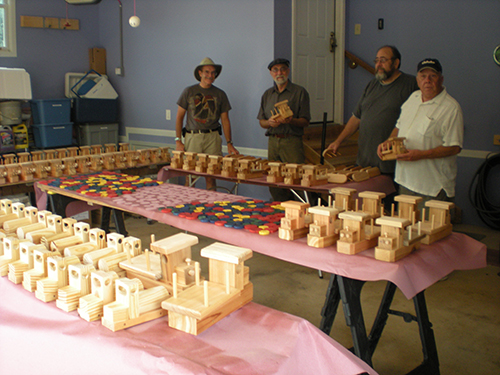 Our toy group is called the Termites. We are a part of our club WOCO here in Westervile, Ohio. Some of us volunteer every week for a day at the local furniture bank in Columbus where they make cabinets and other furniture for the less fortunate. We also make 200 cutouts for children to color at Children’s hospital every month. Last year we made 20 cabinets for the Childhood League in Columbus. We typically make over 4,000 toys to give to charitable organizations for distribution every year. We usually meet one shop every week to make toys mine being one of them. Some of our club makes wood items for the Head Start program in several areas of Ohio. In 2014 we received an award for our volunteerism.