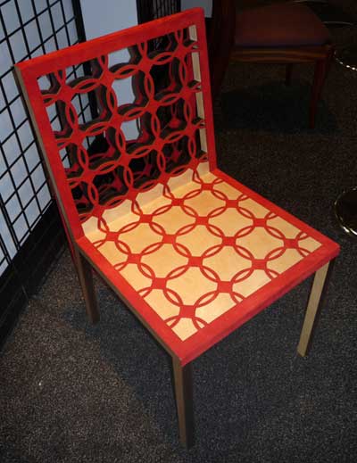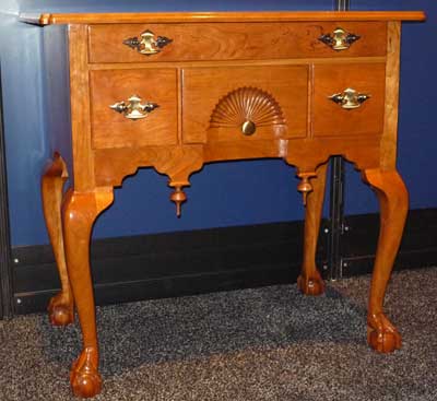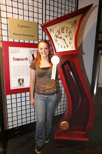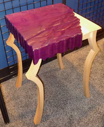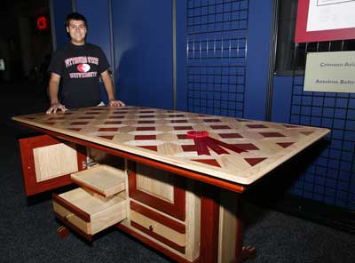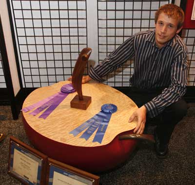 Projects were divided into seven categories, which included case goods, chairs, tables, production/contract work, reproduction, open category and class project. It was refreshing to see the variety of designs and techniques within each of these categories, ranging from traditional to whimsical. Students seemed to leave no stones unturned, in terms of their willingness to explore advanced techniques and surface treatments. I saw exceptional examples of veneering and marquetry, carving and fretwork, lamination and joinery on display. What a visual treat it was for all Fair-goers, and traffic through the Fresh Wood exhibit was brisk each day of the Fair. Finalists were on hand in the exhibit from time to time to discuss their work.