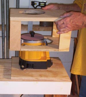 2. Then, I built a table that simply “drops over” the Work Sharp, providing me with a “plane” surface at the same level as the sanding disk.