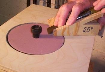 This table allows me many options to place my tool at the optimum angle to the sanding surface. (If I do choose to use the Work Sharp port under the disk, I simply lift off the tabletop with no trouble. The Work Sharp remains securely bolted to its swivel base.)