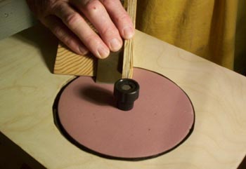4. But how do you “stabilize” the wedge so that it is secure on the tabletop? Easy: I simply place carpet tape on the bottom of the wedge and place the wedge at the most efficent orientation to the direction of the disk.