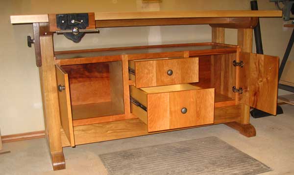 My old plywood and 2X4 workbench finally gave out so decided to build a new one.  Took several ideas from different plans and ended up with this one.  The top is pre-made, but everything else was made in the shop. – Tom Vorpahl, Colorado Springs, CO