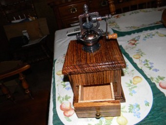 This is a pepper grinder. It is made out of zebrawood. It has four coats of shellac for a finish.